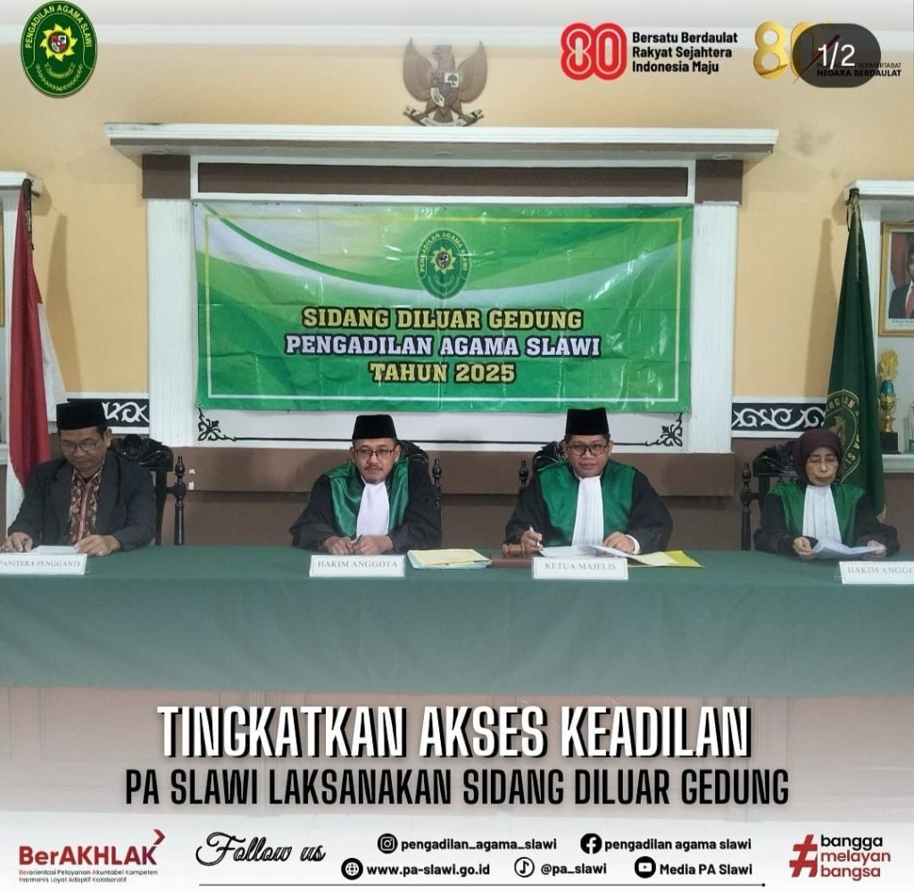 Pengadilan Agama Slawi Melaksanakan Sidang di Luar Gedung Kamis, tanggal 07 Agustus 2025, Pengadilan Agama Slawi kembali melaksanakan kegiatan sidang di luar gedung yang bertempat di Balai Desa Bojong kecamatan Bumijawa kabupaten Tegal . Sidang ini dilaksanakan Dengan Majelis hakim yang terdiri dari Akhmad Kholil Irfan, S.Ag., SH., MH sebagai hakim ketua, Burhan Sholihin, S.Ag., […]